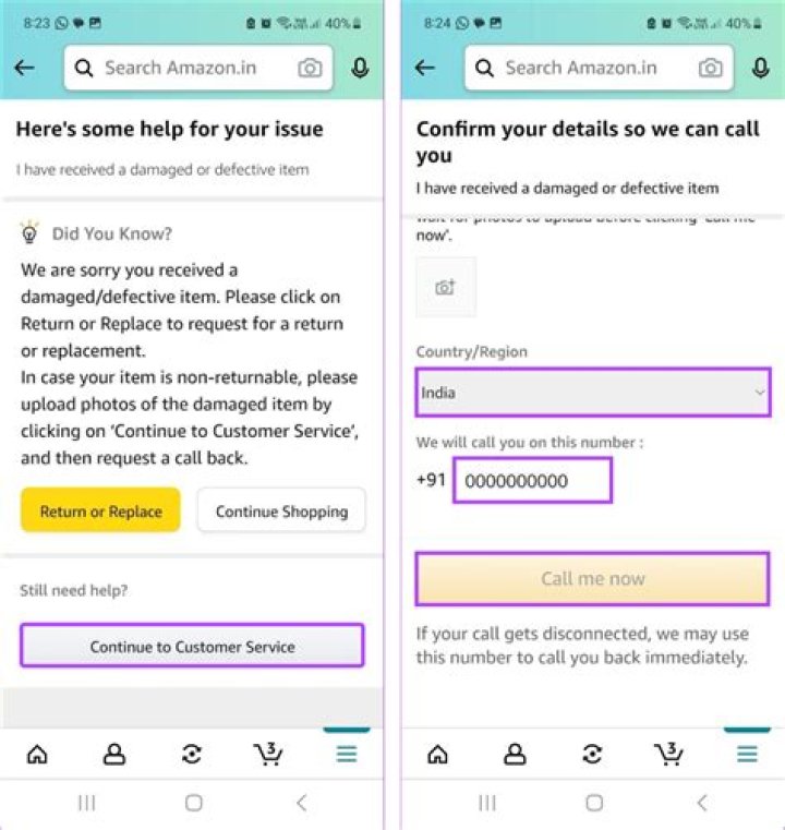 The Amazon mobile app includes a built-in support feature that allows you to contact customer service directly from your device.